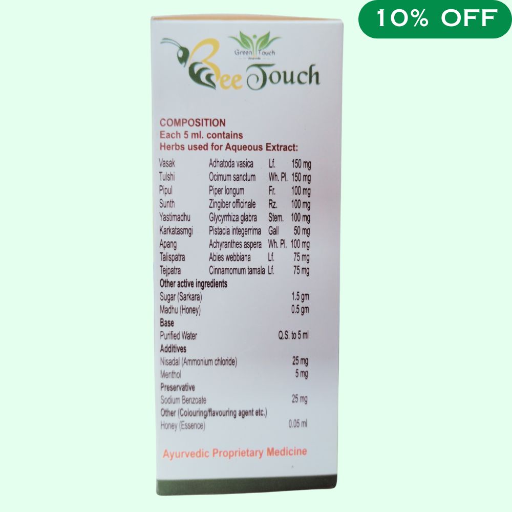 - Bee Touch Ayurvedic Cough Syrup Acts as an expectorant to help clear mucus and congestion.